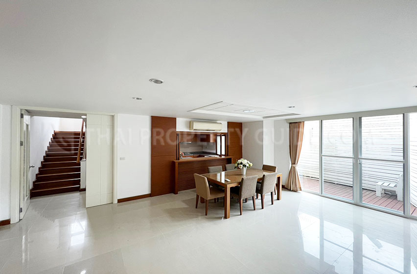 modern, multi-storey house in compound off Ekamai rd. Easy access to Petchburi Rd & RamaIX expressway. With sommunity pool 24 hrs security.