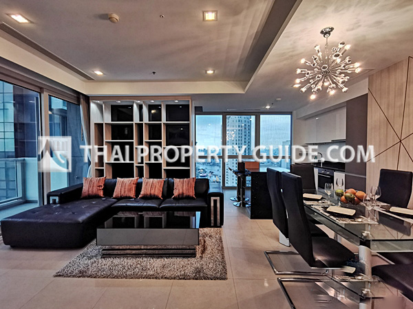 Amazing 2 bedroom condominium for rent by the Chao Phraya River. High-floor unit (above 50th floor), with balcony where you can put sitting for two and enjoy the stunning River View. Convenient commute to UNITED NATION compound via boat.
